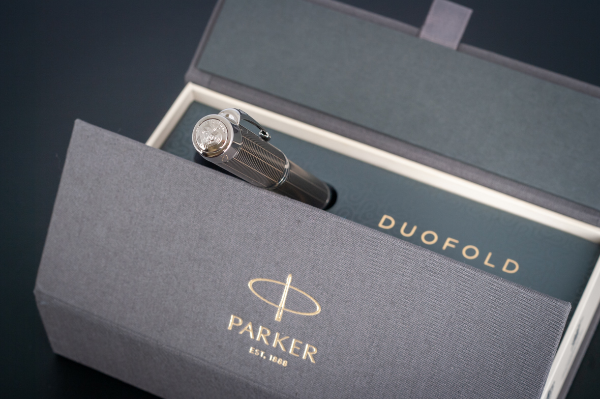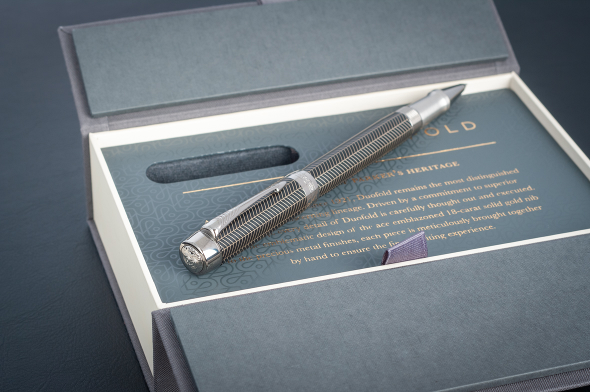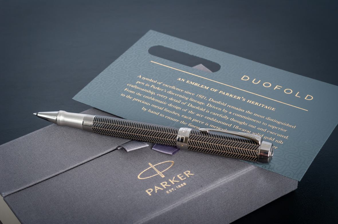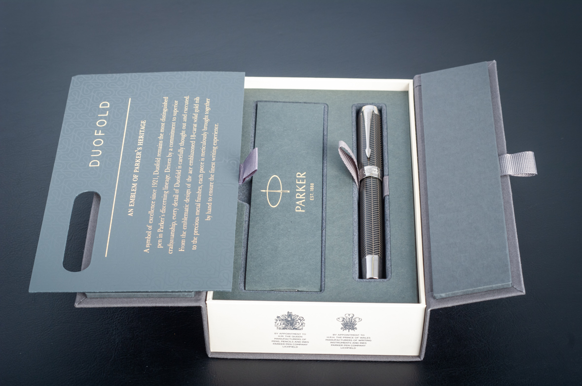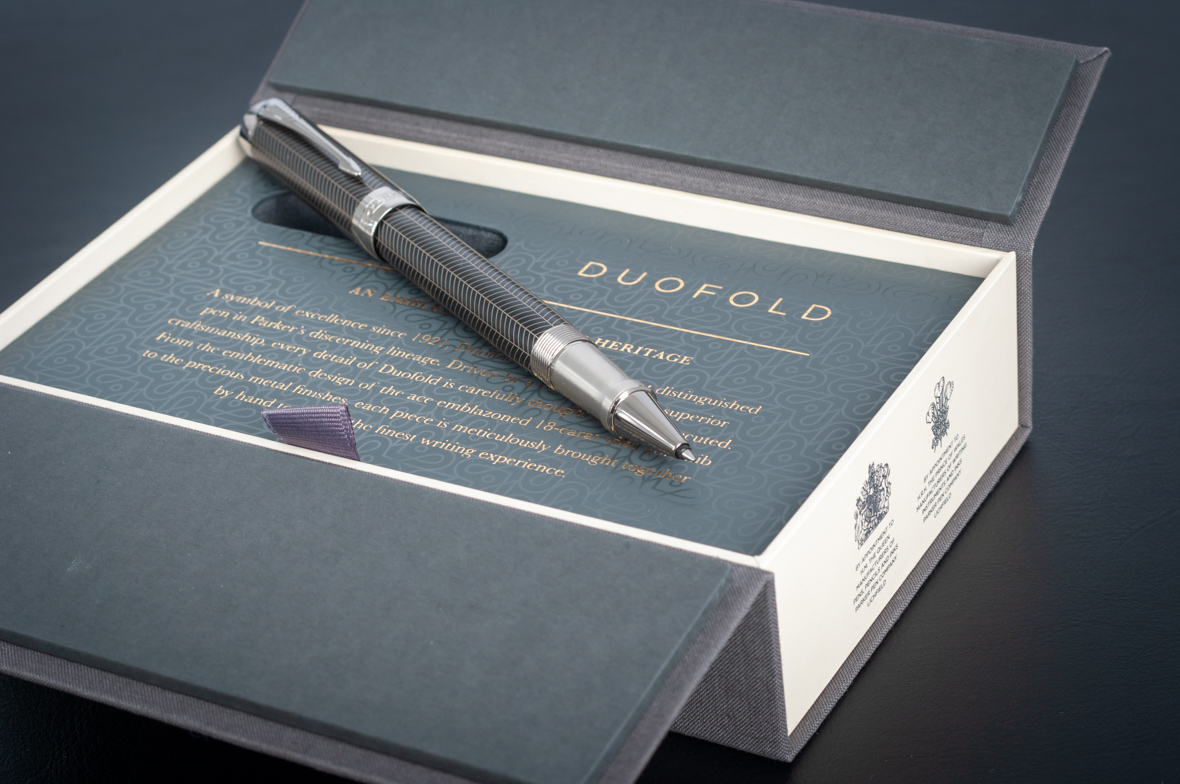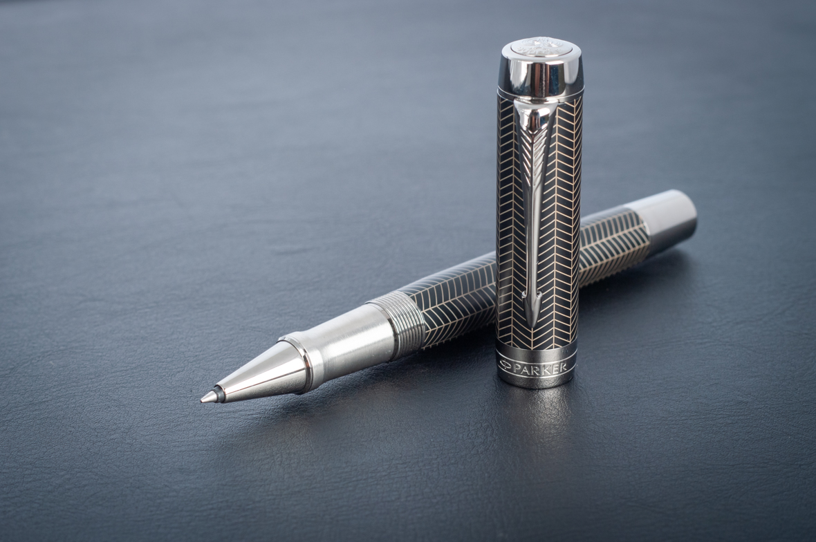 Ручка роллер Parker Duofold Prestige Centennial Black Chevron CT от официального дилера Parker в Нижнем Новгороде. Вы можете дополнительно заказать гравировку, которая подчеркнет Вашу оригинальность и придаст памятность статусному подарку. Все ручки Паркер поставляются в фирменном футляре.